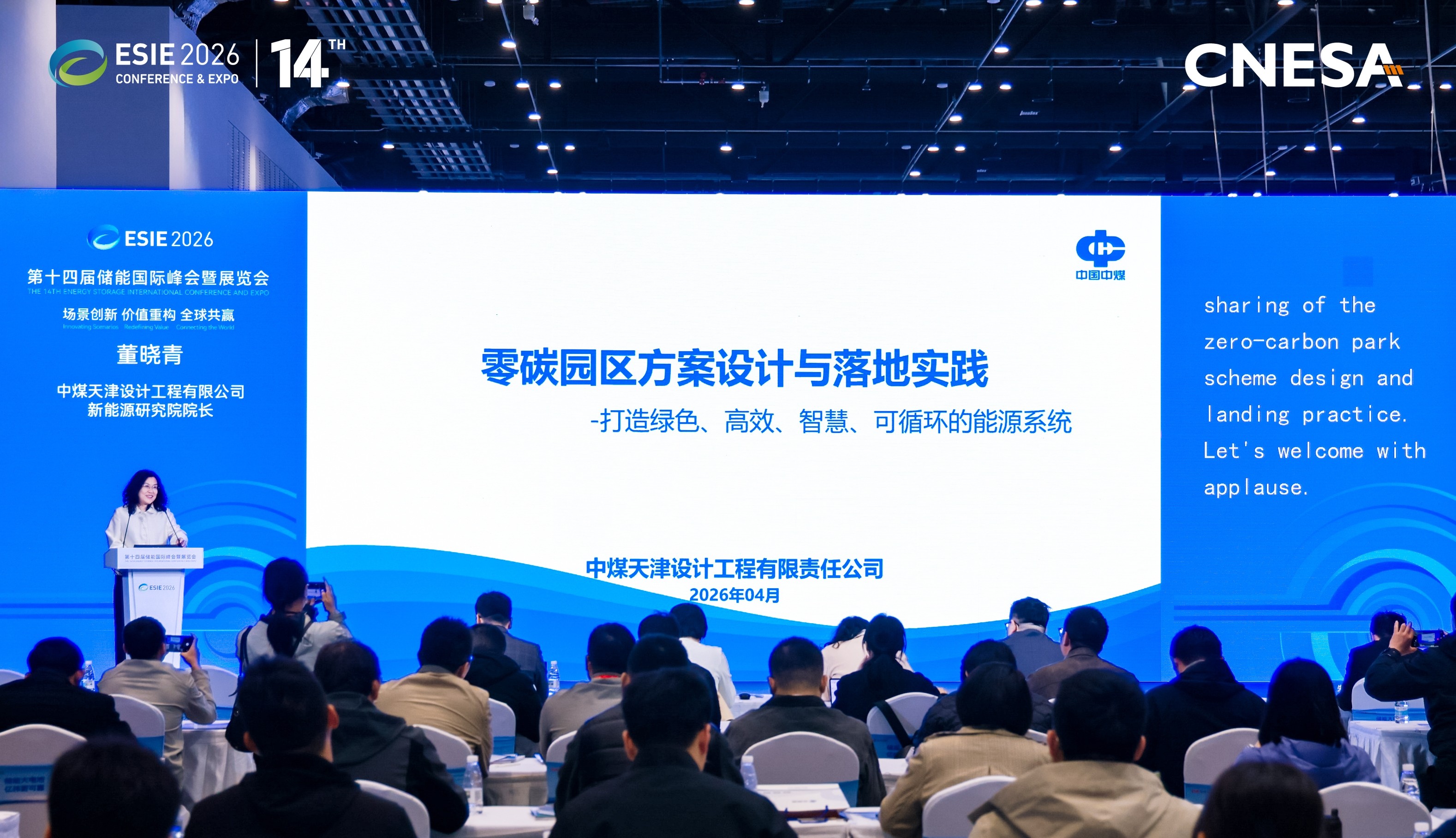 3月31日至4月3日,中煤天津设计公司应邀参加第十四届储能国际峰会暨展览会(ESIE 2026)。作为“十五五”开局之年全球规模最大、专业化程度最高的储能展会,本届峰会以“场景创新 价值重构 全球共赢”为主题,汇聚全球超60个国家和地区的产业精英、800余家储能全产业链展商,聚焦储能全产业链热点议题与前沿趋势。