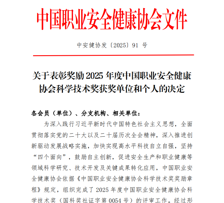 12月26日,中国职业安全健康协会公布2025年度中国职业安全健康协会科学技术奖获奖名单,中煤天津设计公司2项科技成果荣获一等奖。