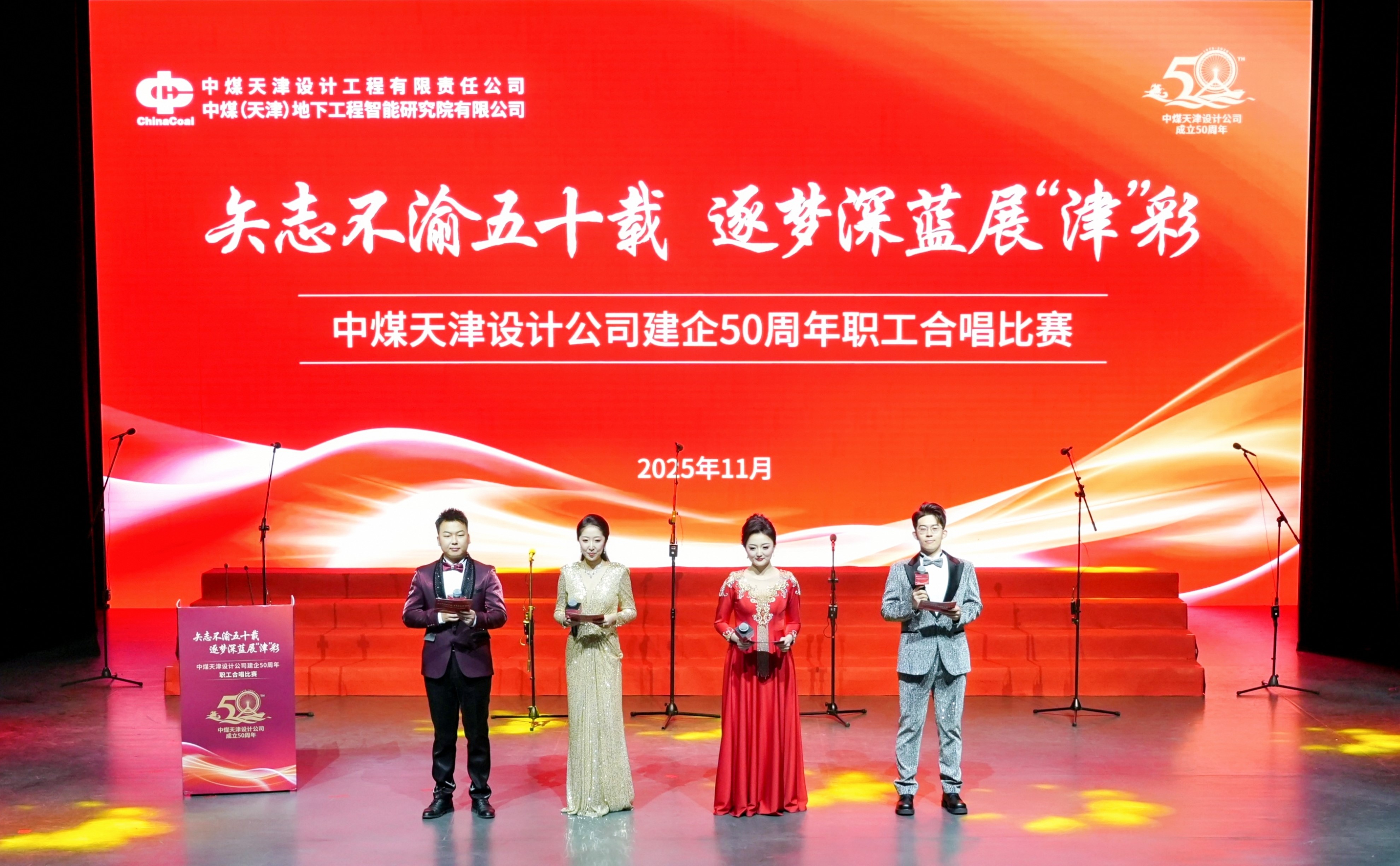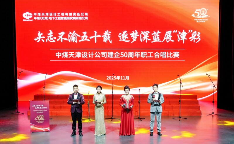 11月10日,中煤天津设计公司成功举办“矢志不渝五十载 逐梦深蓝展‘津’彩”建企50周年职工合唱比赛。公司领导郭庆华、顾建军、张志帆、宋刚、卫中宽、张彦田、白立涛及部分在津老领导代表出席。郭庆华发表致辞表示,在全党全国深入学习贯彻党的二十届四中全会精神,全力冲刺“十四五”,精心谋划“十五五”的重要节点,全体员工齐聚一堂,用歌声致敬企业五十年的风雨之路,用旋律赞颂一代代“天津院人”接续奋斗的壮志豪情!