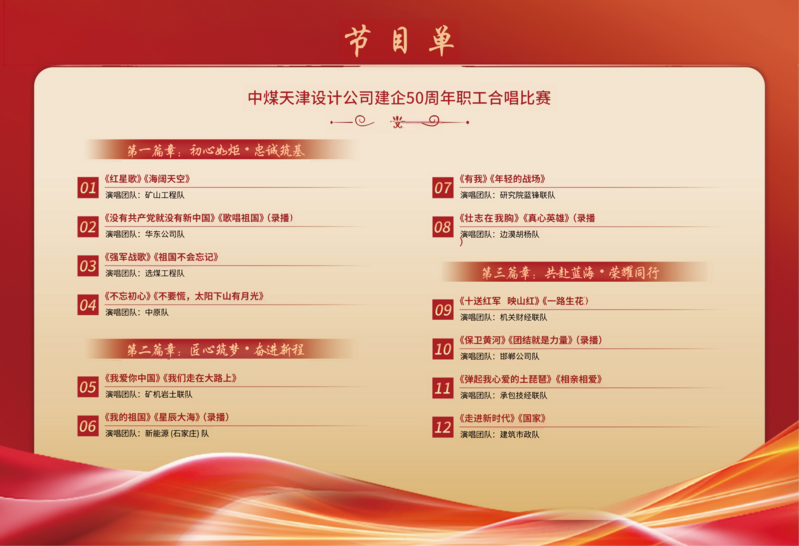 此次职工合唱比赛,展现了公司深厚的历史积淀和全体员工团结一心、奋发有为的精神风貌,极大地凝聚了全员共识,鼓舞了前进斗志。站在五十周年的历史坐标上,中煤天津设计公司正以“直挂云帆济沧海”的磅礴气势,向着更加广阔的未来奋勇前进!