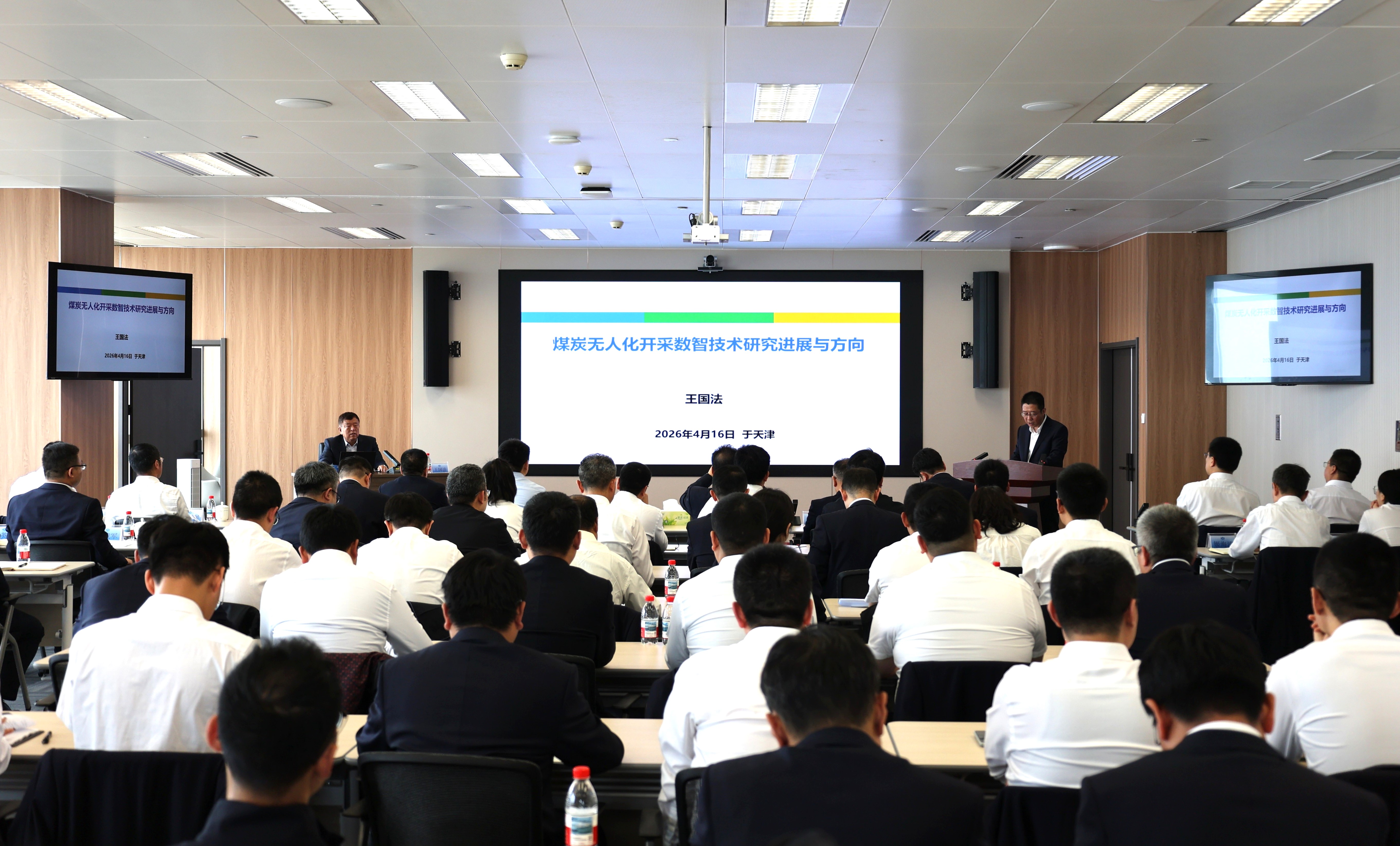 会上,公司主要介绍了入津以来在创新平台建设、关键核心技术研发、科技成果转化、产学研用协同创新等方面取得的成果,重点介绍了数智全重实验室无人化开采地质保障工程技术研发中心当前建设情况。王国法围绕“煤炭无人化开采数智技术研究进展与方向”作主题报告,系统阐述了煤炭无人化开采数智技术发展现状、重大科技成果、典型工程示范及未来发展重点,深刻剖析地质保障、智能决策、装备自主化等关键技术瓶颈,并就加快推进技术创新、成果转化与产学研协同提出指导性意见。
