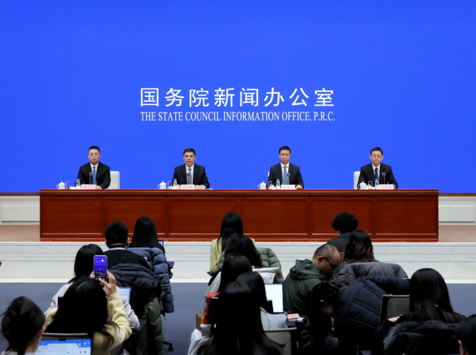 1月28日,国务院新闻办公室举行2025年高质量发展成效系列新闻发布会,国务院国资委党委委员、副主任庞骁刚出席介绍2025年国资央企高质量发展情况并回答记者提问。国务院国资委改革局、科创局负责同志一同参加发布会。
